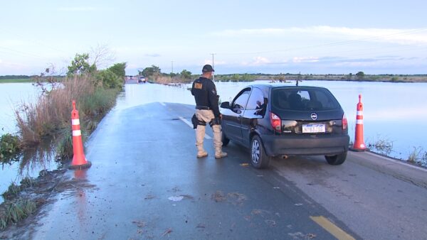 “Até o momento, a água está em um nível considerável no leito da via. Ainda é possível que os veículos trafeguem, desde em baixa velocidade. Vamos permanecer até que o volume de água diminua e que a gente possa sair daqui e deixar a população em segurança. Porém, a gente precisa também da da participação da população. Desse envolvimento na questão de manter a sua própria segurança aqui no local”, alertou.