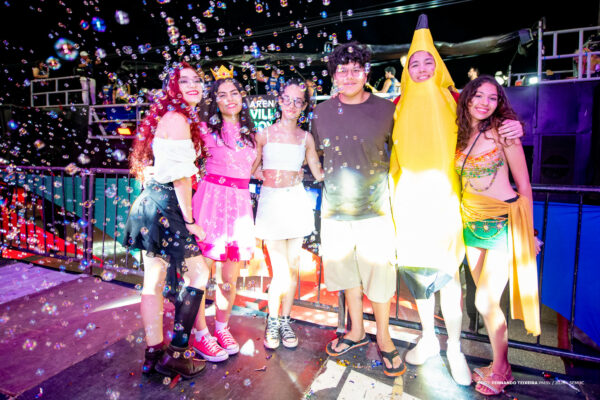“Um amigo nosso tinha pedido uma fantasia de banana na internet, aí a gente decidiu providenciar para todo mundo. No nosso grupo também tem pirata, dançarina, e princesa. Como estamos de férias, a gente aproveitou esse tempo livre para desenvolver as fantasias e estamos bem felizes com o resultado. O bloco está super divertido e a música é muito boa”, destacou