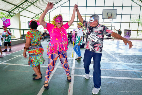 Carnaval é alegria, bloquinhos de rua e as famosas marchinhas. A festa tradicional brasileira também é um momento de troca entre gerações. Por isso, os projetos sociais Cabelos de Prata e Conviver do Cras no São Francisco, participaram do pré-carnaval na Praça da Bandeira nesta quarta-feira, 25. Nesse primeiro dia, 77 idosos e 30 crianças dançaram e se divertiram juntos, fortalecendo laços.