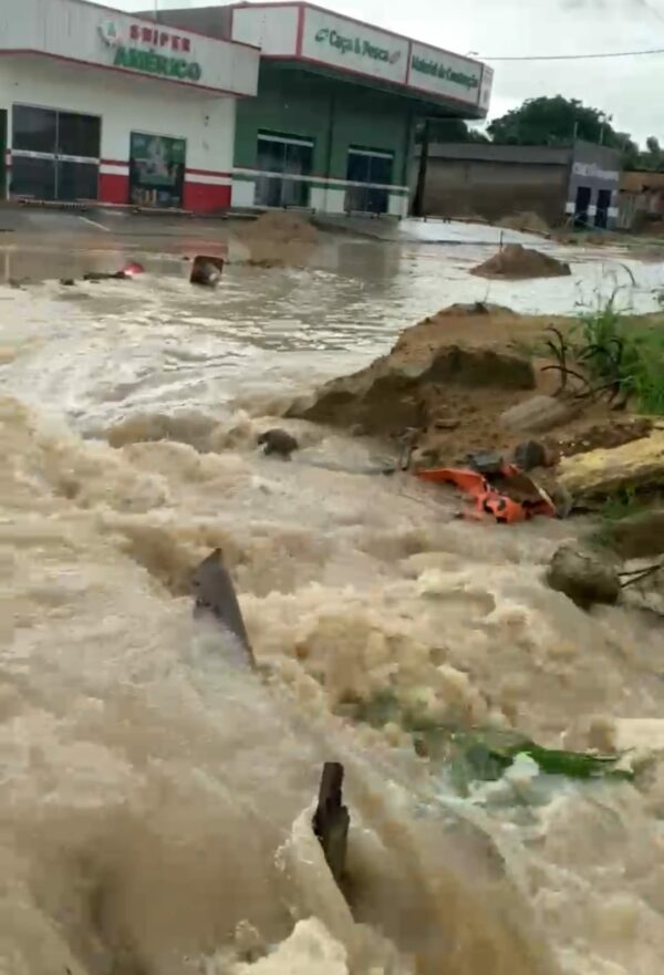 “Essa obra de drenagem está sendo realizada desde fevereiro com prazo de entrega para o dia 14 de maio. Porém, como pode ver na imagem, mesmo aberto não suportou o volume de água. Os bueiros são pequenos demais para o volume de água”, disse o morador.