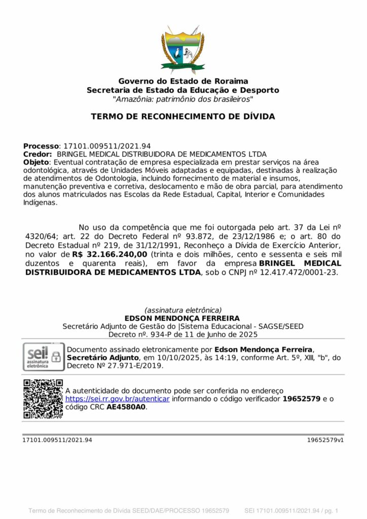 O Ministério Público de Contas de Roraima (MPC-RR) vai investigar um pagamento feito “a toque de caixa” pela Secretaria de Estado da (Seed) à empresa Bringel Medical Distribuidora de Medicamentos Ltda, sediada em Manaus.