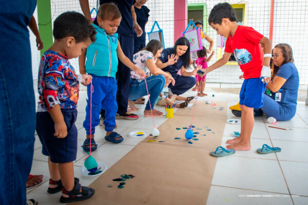 Durante a ação, as crianças participaram de pintura em tela, pintura suspensa, pintura com balões e atividades de musicalização, todas voltadas a estimular a expressão de sentimentos e a criatividade, além de tornar o ambiente hospitalar mais acolhedor, conforme explicou a acadêmica Ana Cristina Lima, uma das organizadoras da programação.
