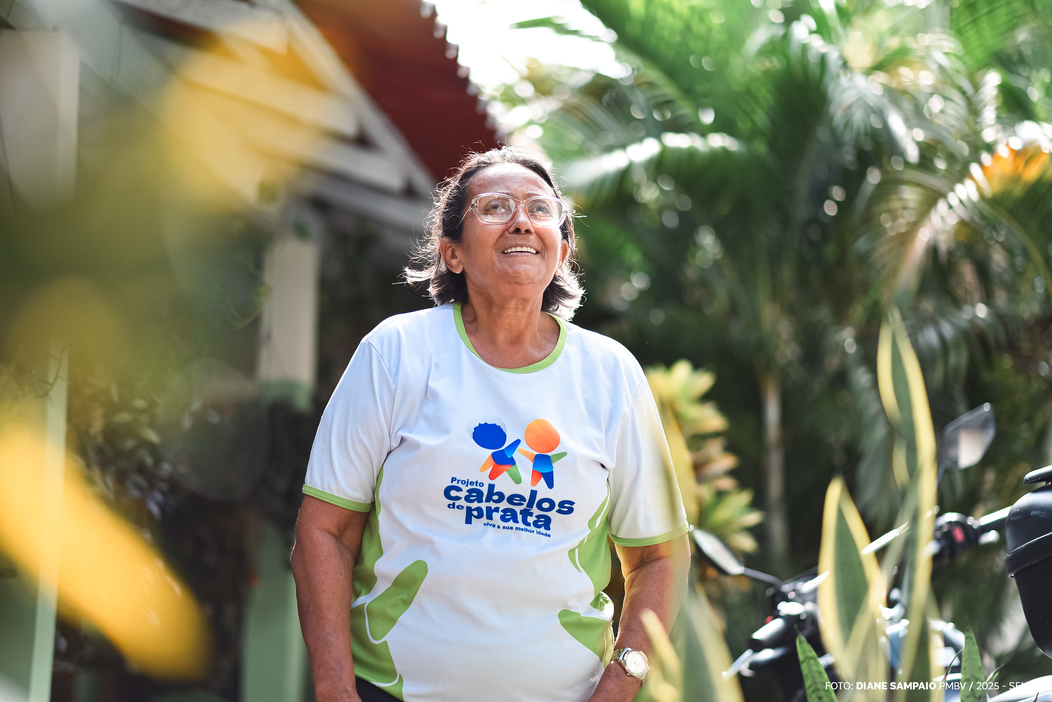 Com um ano de participação no Cabelos de Prata, Maria Francisca, 68 anos, encontrou muito mais que atividades recreativas – encontrou um lugar para reviver histórias, compartilhar sabedoria e exercitar a gratidão. Dona Maria vê no projeto um refúgio para celebrar a vida e a fé.