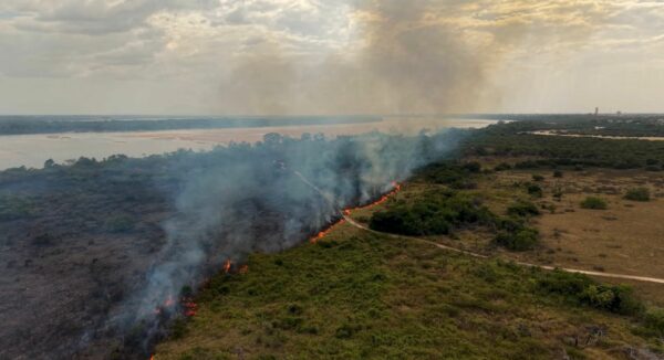 O piloto de drone, Yan Costa, registrou nesta terça-feira, 25, imagens de uma forte queimada próximo ao Rio Branco, na região da praia do Caçari, em Boa Vista.
