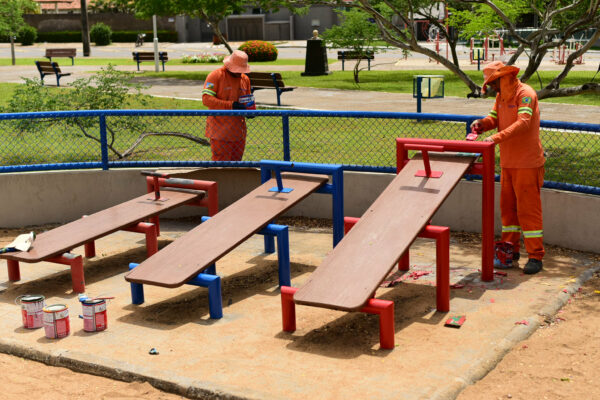 Atualmente, dez praças estão com cronogramas de serviços. Que incluem pintura de pisos, brinquedos e muretas, além de reparos em alambrados, calçadas, pavimentação com paver, meios-fios e paisagismo.