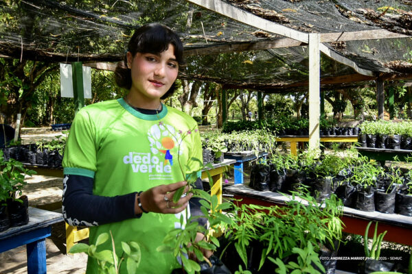 “Eu tinha muita insegurança, não queria sair de casa, tinha medo do julgamento das pessoas. No Dedo Verde, consegui me encontrar, perdi o medo, melhorei na escola e comecei a fazer cursos. Hoje me sinto mais confiante e feliz.”