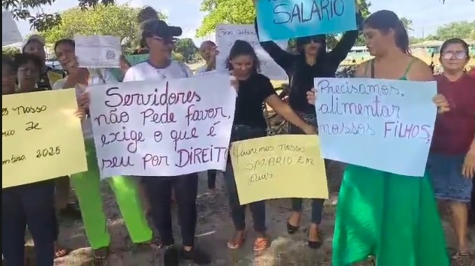 Nesta segunda-feira, 26, um vídeo que circula em redes sociais, mostra os servidores realizando uma manifestação e aparecem com diversos cartazes exigindo o pagamento. Segundo eles, estão com diversas pendência nas contas de energia, água, internet e boletos bancários.