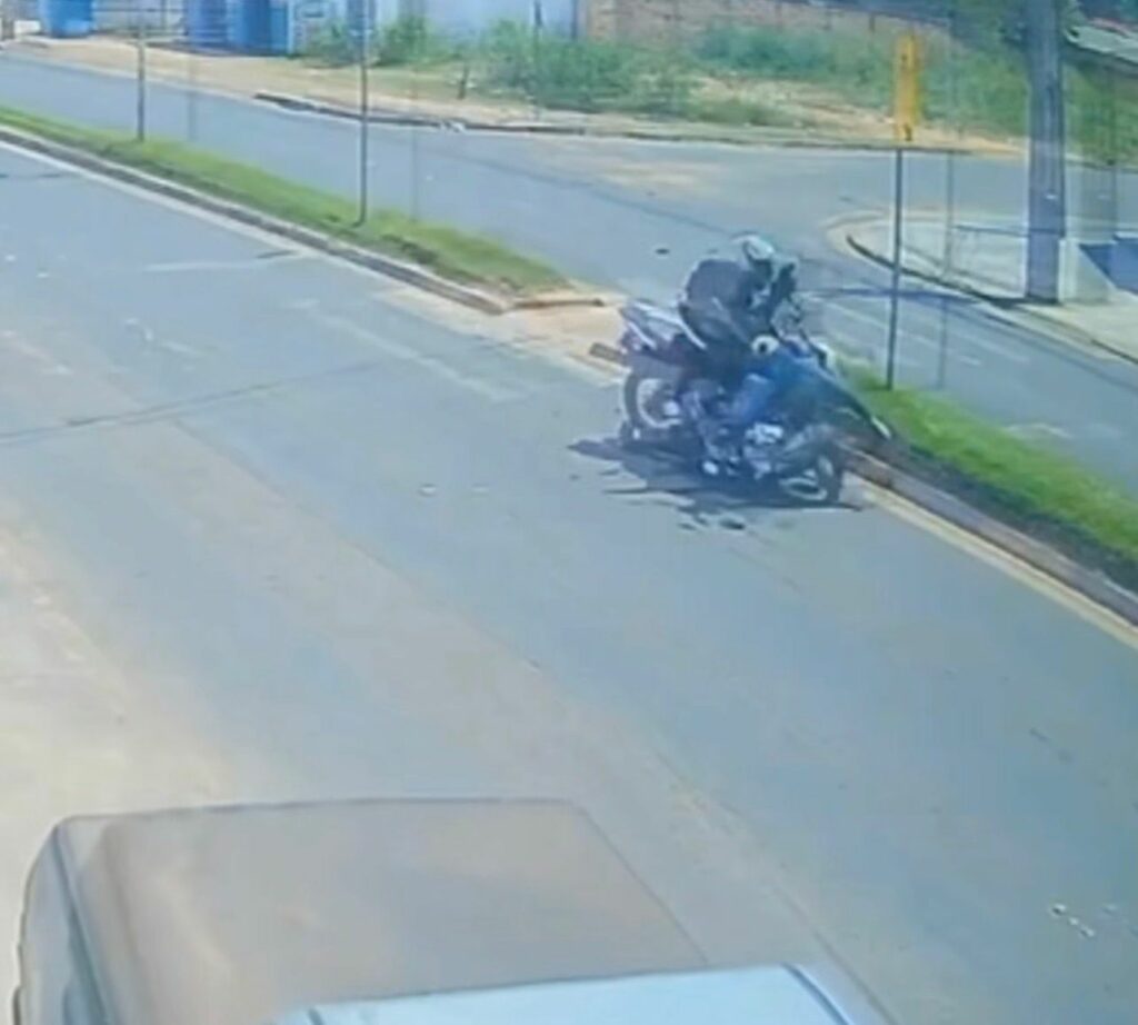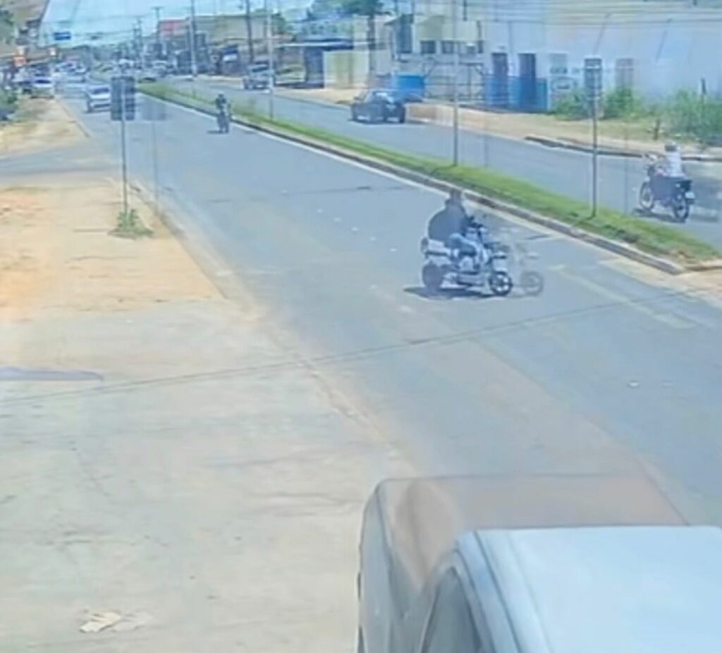 Um vídeo que circula nas redes sociais mostra o momento exato em que uma moto elétrica é atingida por um motociclista no bairro Centenário, em Boa Vista, nesta terça-feira, 4.