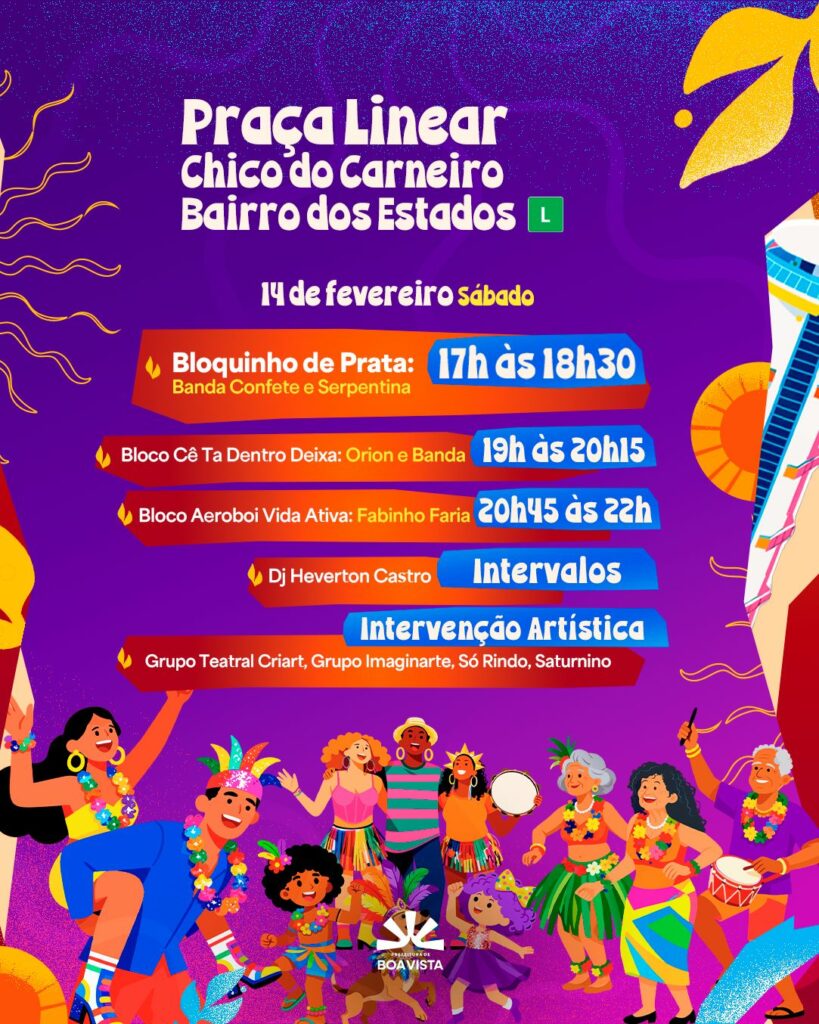 Nos dias 14 e 15, a criançada e o público da “melhor idade” terão um Carnaval ainda mais especial. Eles terão uma programação cuidadosamente preparada para gerar alegria, diversão e momentos inesquecíveis para toda a família. Com atividades lúdicas, muita música, cores vibrantes e animação do começo ao fim, a festa promete transformar a Praça Linear Chico do Carneiro, no Bairro dos Estados, em um verdadeiro cenário de encanto.