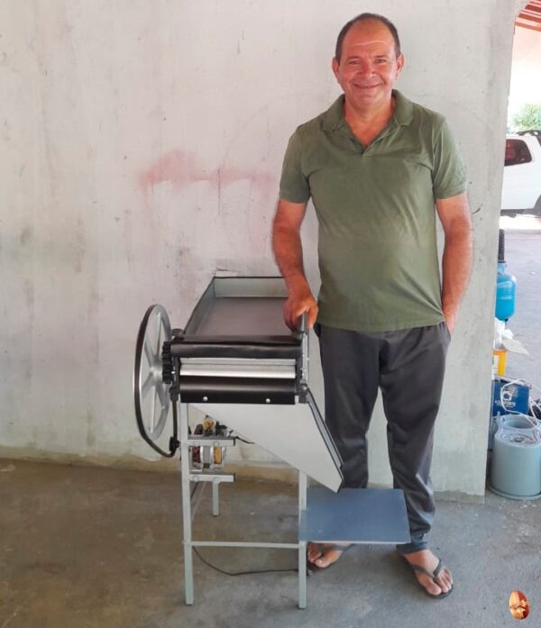 O equipamento desenvolvido por ele é relativamente simples, mas eficiente. Com uma estrutura composta por uma base, dois rolos giratórios, assim como um motor, a máquina permite inserir manualmente as vagens, que são abertas automaticamente, separando os grãos. Os feijões bons seguem por uma saída específica, enquanto os que não se desenvolveram adequadamente são descartados por outro lado.