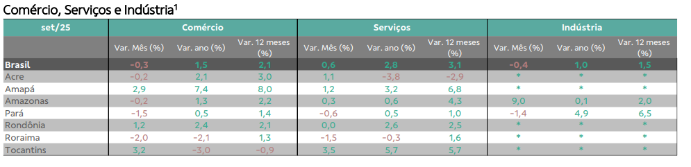 O comércio varejista também deve enfrentar dificuldades. Segundo o levantamento, Roraima registrou queda de 2,0% nas vendas na comparação mensal mais recente e acumula retração de 2,1%, ficando entre os piores desempenhos do país.