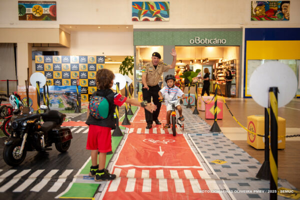 Nesse sentido, uma das ações educativas foi a Minicidade Itinerante de Trânsito. Um espaço lúdico onde crianças podem brincar enquanto aprendem sobre os cuidados nas ciclovias, nas vias públicas e a importância da sinalização. A programação também conta com exposição de motocicletas e de um veículo utilizado nas ações de fiscalização de trânsito em Boa Vista.