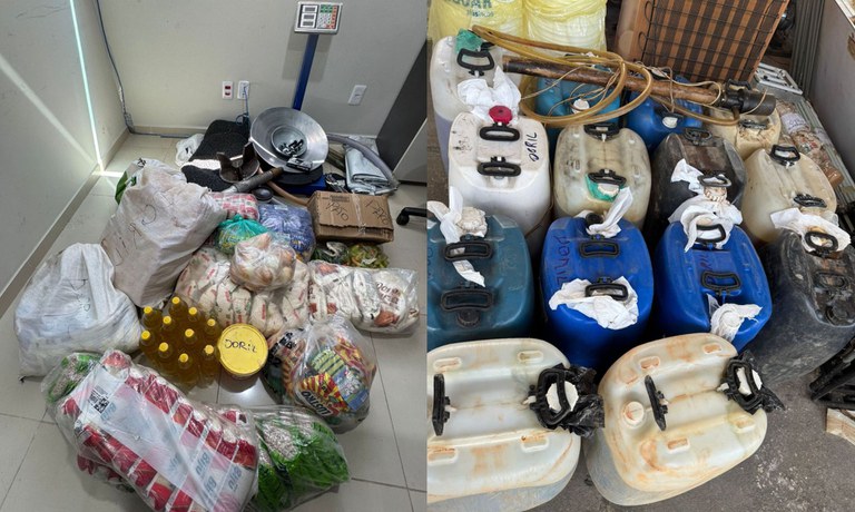 Os materiais estavam em um depósito clandestino descoberto pela fiscalização em área rural. Os garimpeiros haviam escondido combustível, mantimentos e utensílios em meio à vegetação. Os itens estavam organizados e até marcados com apelidos que indicavam os destinatários, reforçando a existência de uma logística estruturada para abastecer garimpo ilegal.