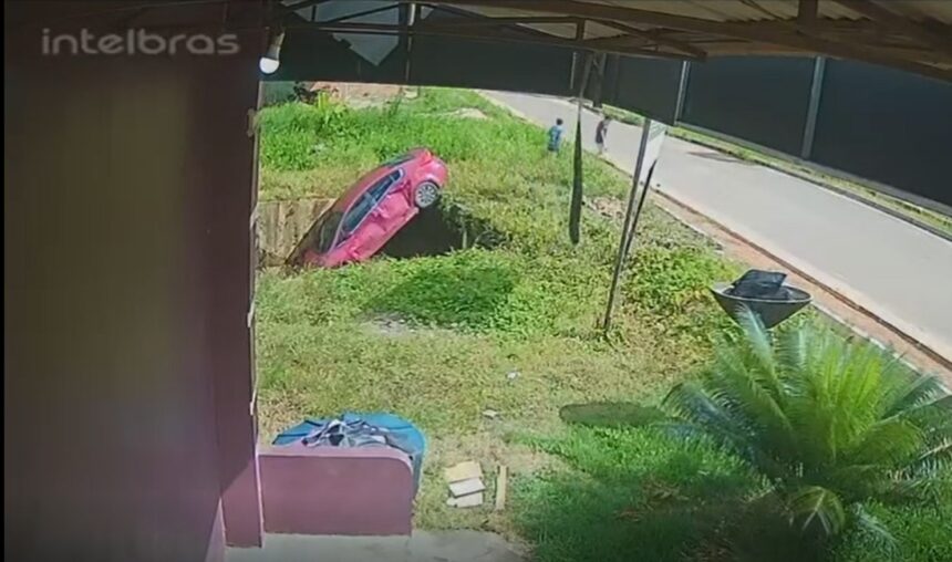 No vídeo registrado por câmera de segurança, o carro invade a via preferencial, bate na motocicleta e cai em um buraco mais à frente. Em seguida, os adolescentes saem do veículo e se evadem do local.