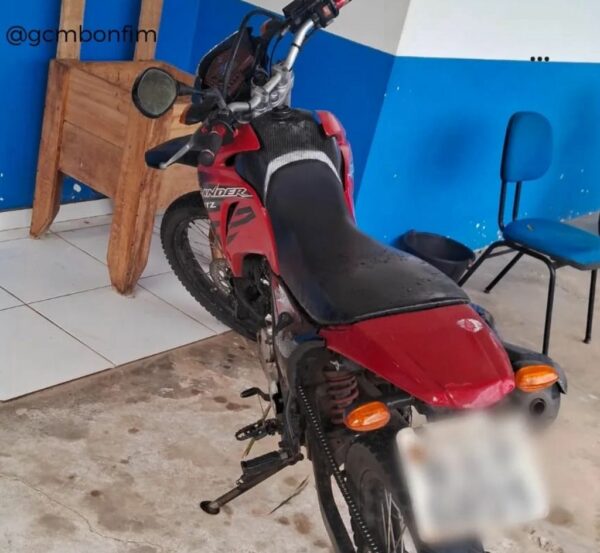 De acordo com a Guarda Civil Municipal de Bonfim, a motocicleta furtada era uma Lander Vermelha. Durante a abordagem à dupla, um dos suspeitos se rendeu. No entanto, o outro apreendeu fuga.