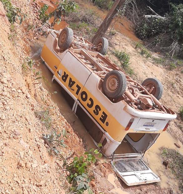 Uma Kombi de transporte escolar, que transportava alunos, capotou nesta sexta-feira, 24, na Vicinal 8, em Tatajuba 2, município do Cantá, Norte de Roraima.