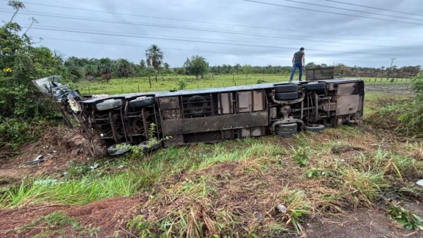 Um ônibus interestadual que fazia a linha Manaus-Boa Vista com 15 passageiros e dois motoristas, tombou na manhã desta quarta-feira, 8, na BR-174, no km 312, Caracaraí, Sul de Roraima.