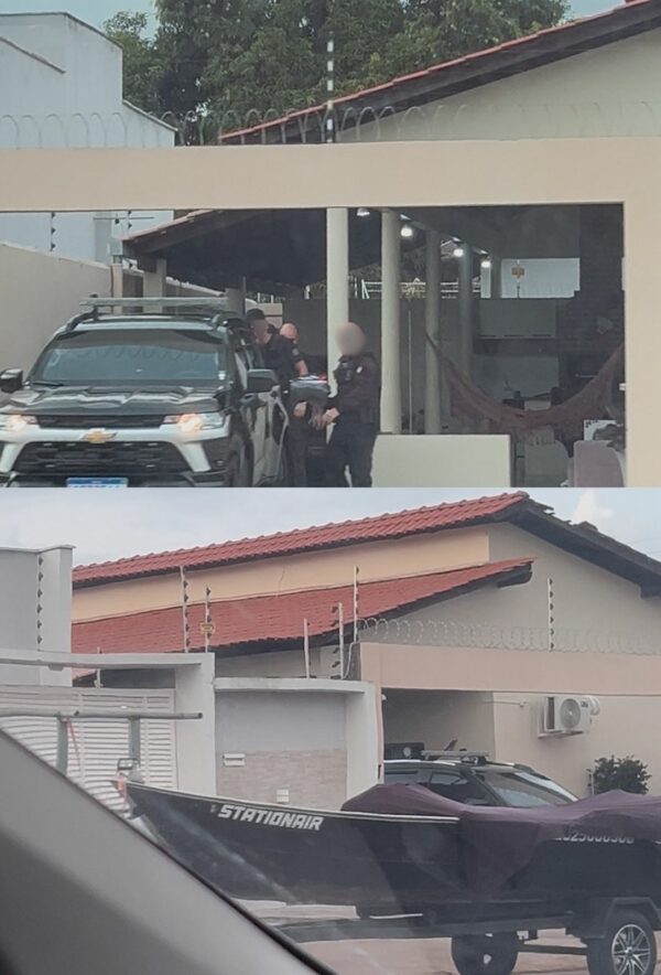 Imagens registradas pelo portal Roraima em Tempo, mostram uma viatura da PF em uma residência no bairro Caranã, zona Oeste de Boa Vista.