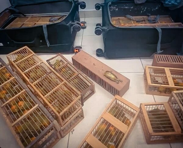 Os pássaros estavam em três malas, em condições de maus-tratos.