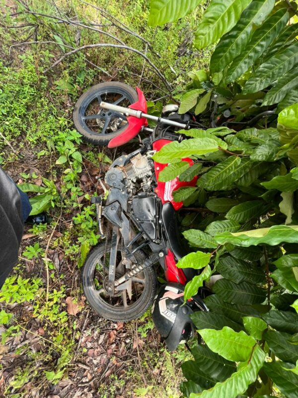 Após levantamento de informações, os policiais encontraram a moto abandonada em uma área de mata fechada. A equipe levou o veículo para a sede da Delegacia. No local, ele passou por perícia do Instituto de Criminalística, para avaliação de integridade antes da devolução ao proprietário.