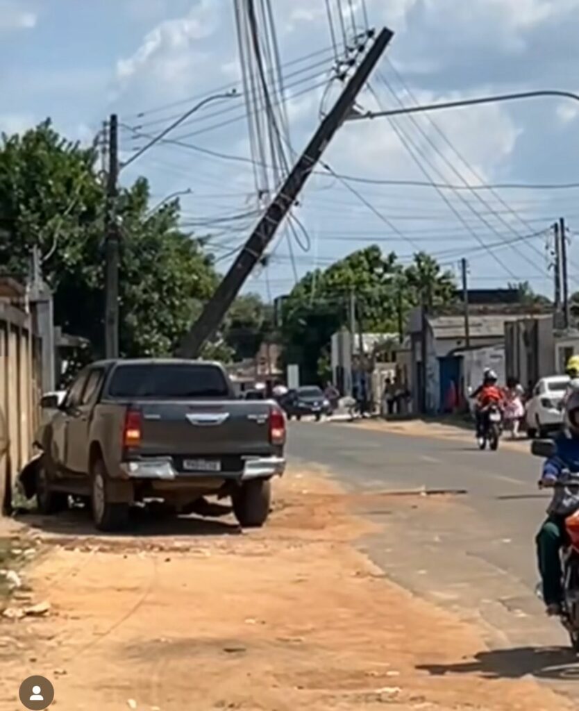 Um carro, modelo Hillux, se envolveu em um acidente com um Corsa Classic e acabou batendo contra um poste de energia. O caso aconteceu na rua Francisco Inácio de Sousa, no bairro Asa Branca, em Boa Vista, nesta sexta-feira, 12. Com o impacto, o poste se quebrou e ficou sustentado apenas pela fiação elétrica, oferecendo risco aos moradores e motoristas que passavam pela região.