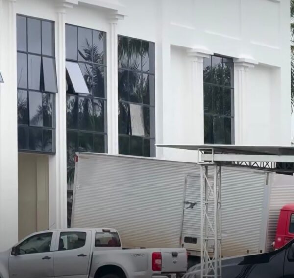 Um vídeo que circula nas redes sociais flagrou o momento em que uma caminhão baú estaciona na porta dos fundos do Palácio Senador Hélio Campos.