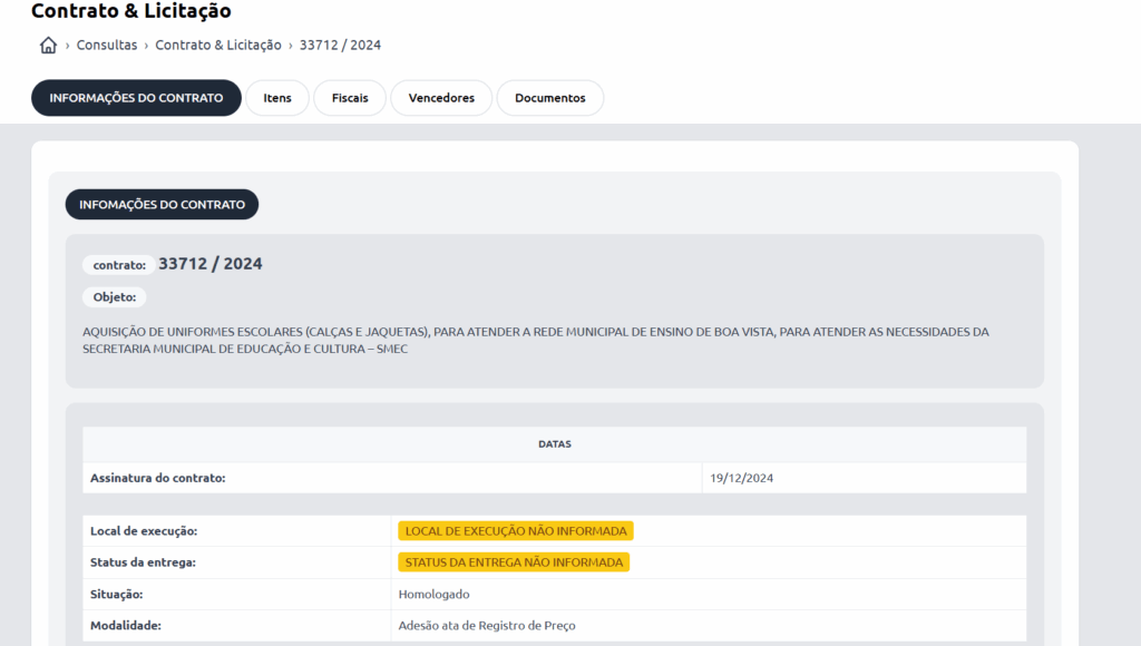 No vídeo, o prefeito reafirmou que todos os dados estão disponíveis de forma pública e acessível a qualquer cidadão, no Portal da Transparência da Prefeitura. “Esse é o portal da transparência da Prefeitura. Vocês pesquisam no Google ‘transparencia.boavista.rr.gov.br’ e vai aparecer esse portal. Lá na área de contratos, eu filtrei por ‘uniforme’ e está aqui o contrato”, explicou Arthur.