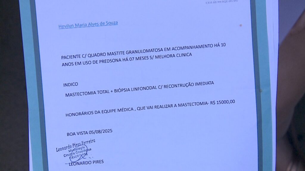 Procurada, a Secretaria de Estado da Saúde disse que a paciente tem uma consulta agendada para o dia 26 de agosto de 2025, no Centro de Referência da Saúde da Mulher. Ela passará por reavaliação do quadro com especialistas.