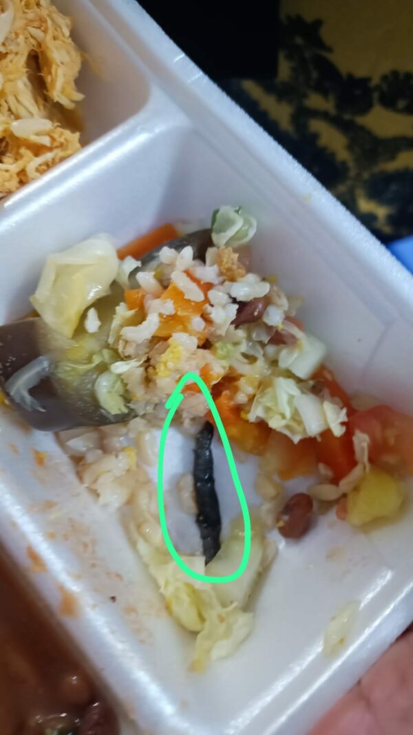 “Minha irmã teve que internar para realizar um parto antecipado. Na mesma noite em que deixaram a comida, ela deu a primeira colherada e ao mastigar, sentiu algo andar na boca dela e cuspiu. Quando ela viu, era uma lagarta preta que estava na comida. Isso é um descaso muito grande pra quem já está em um estado fragilizado”, explicou a mulher.