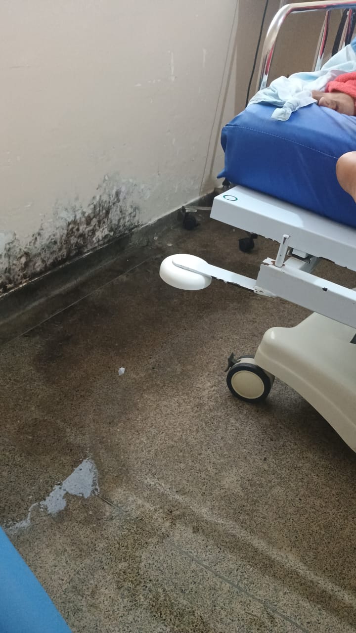 De acordo com o relato, a enfermaria onde Jamily Araújo Pereira está internada, apresenta goteiras que formam poças de água e mofo nas paredes do quarto. Além disso, o ar-condicionado não funciona.