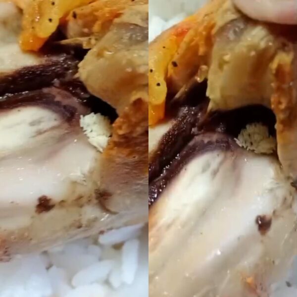 Conforme denúncia, a alimentação, composta principalmente por arroz, verduras cozidas e coxa de frango, foi entregue na noite desta terça-feira, 21.